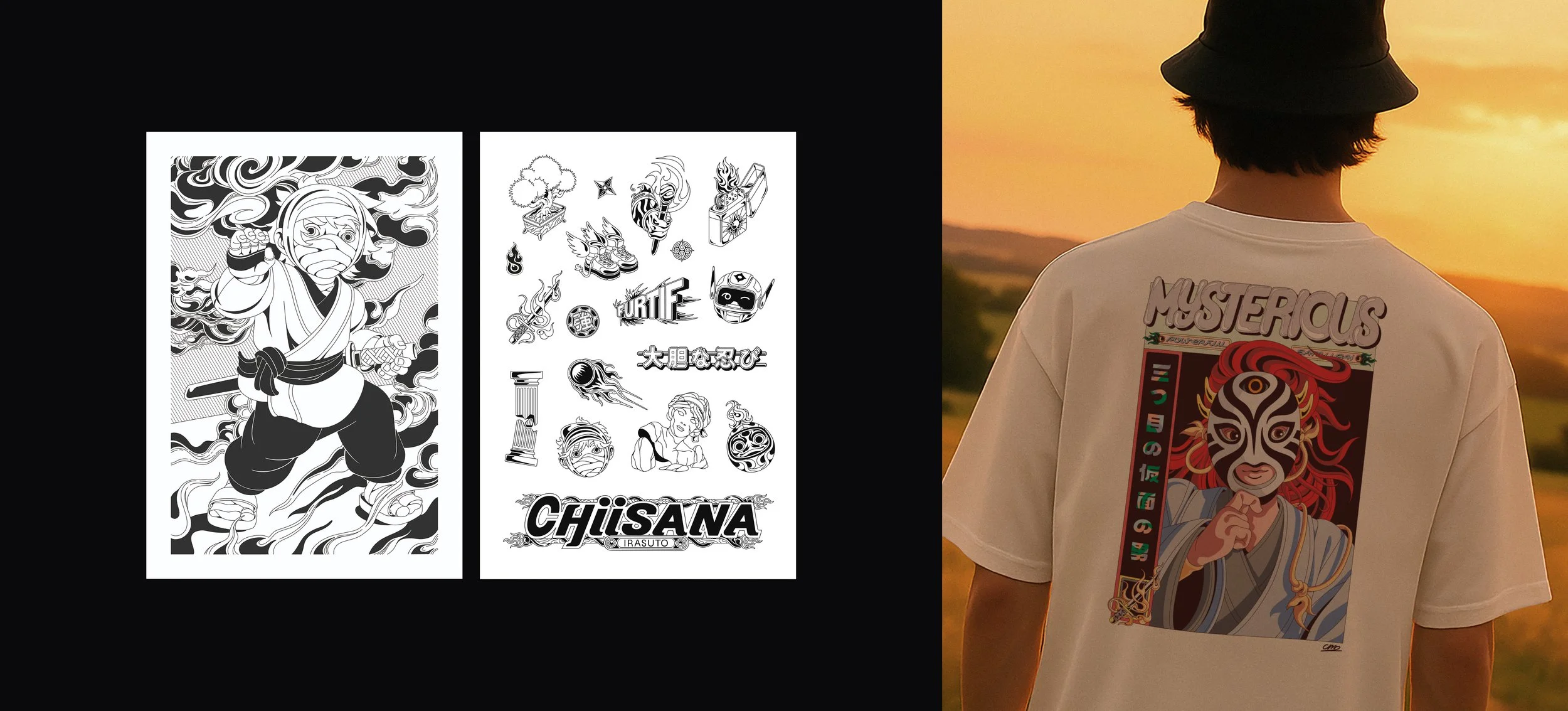 Imagination débordante, influence japonaise et néoclassique, mon champ créatif s’étend de l’illustration au graphisme. Après l’obtention de mon diplôme de direction artistique, je me suis tout d’abord investie dans les arts graphiques et la conception d’identité visuelle.
